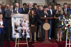 Speaker Mike Johnson led a prayer vigil inside the United States Capitol for Charlie Kirk, which saw strong attendance from Republicans but far fewer Democrats.