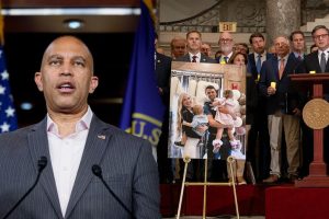 House Minority Leader Hakeem Jeffries led a faith vigil criticizing Republicans during the ongoing government shutdown over spending disagreements.