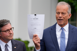 Senate Majority Leader John Thune, R-S.D., criticizes Senate Democrats for blocking the GOP's short-term funding extension as Congress hurtles toward a...