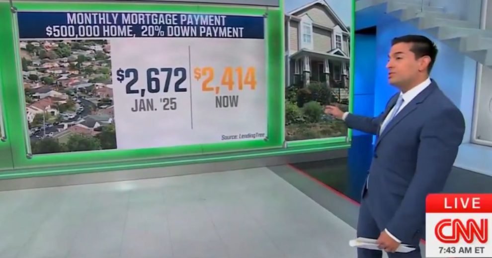 CNN reported Friday that the average monthly home mortgage payment is down approximately $260 per month since President Donald Trump took office a year ago. The network is normally not quick to say anything positive about Trump or his policies. Nonetheless, CNN business reporter Matt Egan showed the difference in…