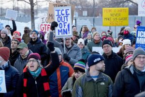 Anti-ICE protests have erupted en masse in Minneapolis following the fatal shooting of a protester who the Trump administration says tried to run over an agent.